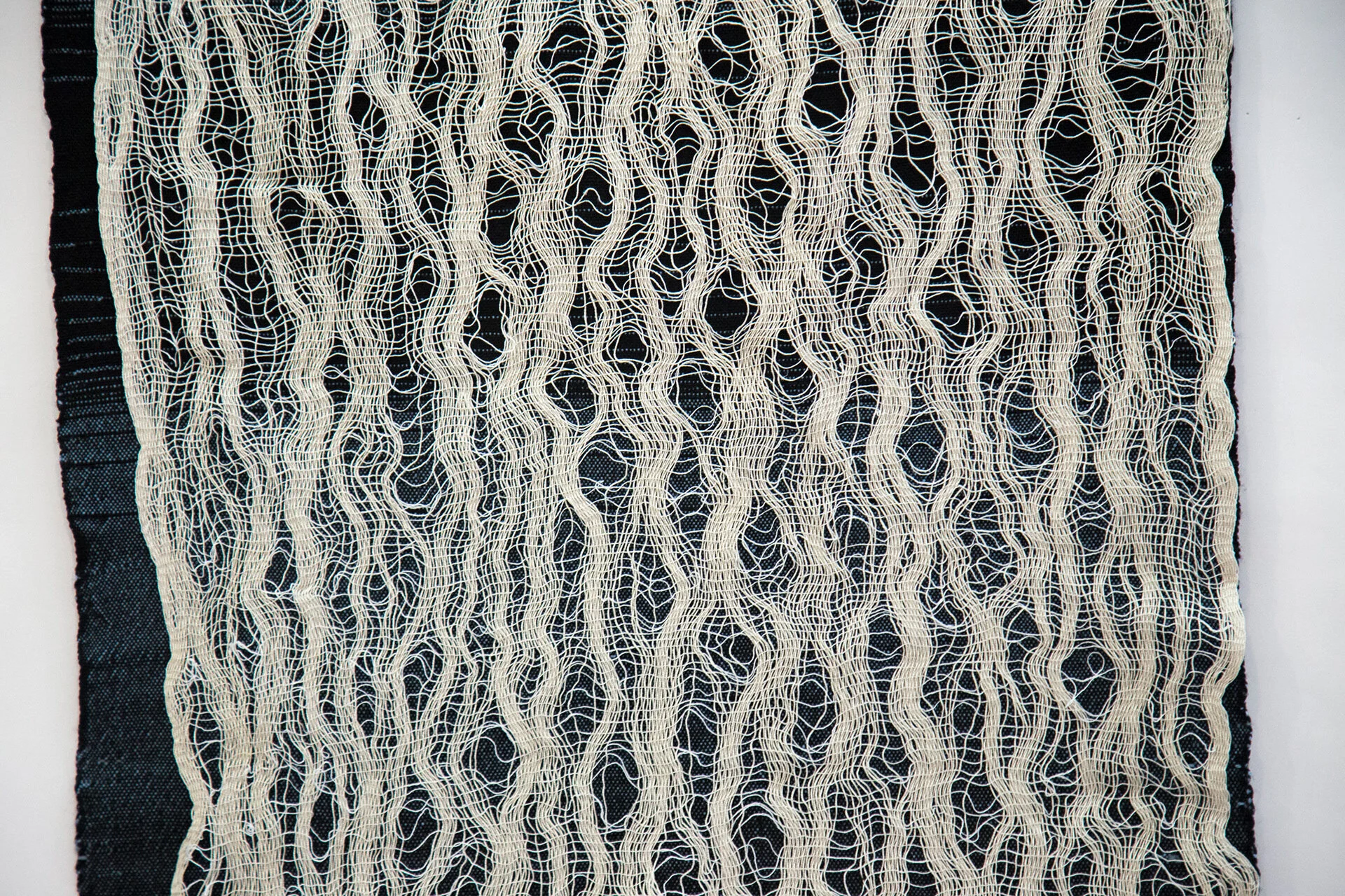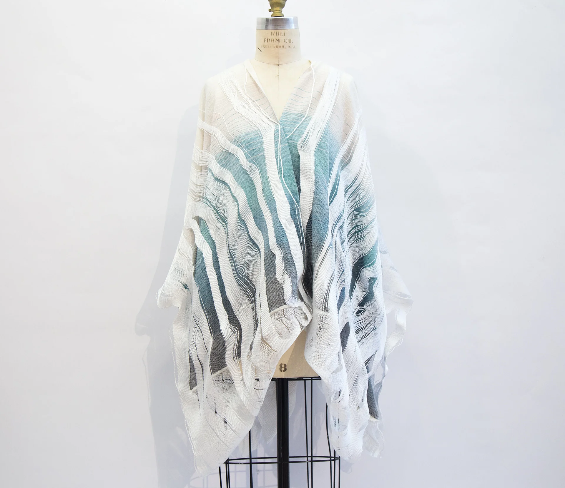 //Blue- merino wool, rayon, monofilament / Black- merino wool, linen, cotton